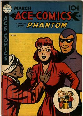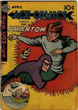 A detailed list of all the Phantom stories published in Ace Comics and the corresponding issue numbers is now available. Click HERE to see it.The Phantom's first appearance on the cover of Ace Comics was on issue #140. Issues #140 to #142 had a small picture of the Phantom's face in a circle about 25mm in diameter on the cover, with the rest dominated by other King Features characters (Popeye etc.).