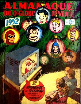 Editora Globo also produced a series of Christmas annuals as a spin-off from the Gibi series. These were produced between 1941 and 1963, and featured complete stories by a range of characters such as Prince Valiant, Flash Gordon, and Alley Oop, but The Phantom was not included until the 1952 annual. Although these books were published in December, the new year number was identified on the cover. All books had a hard cover with artwork by Luis Fernando Guimarães (Lutz), Domingos Cervera or uncredited artists. The first Phantom book (1952) was 28cm x 37cm, but the other five were smaller at 21cm x 27cm.