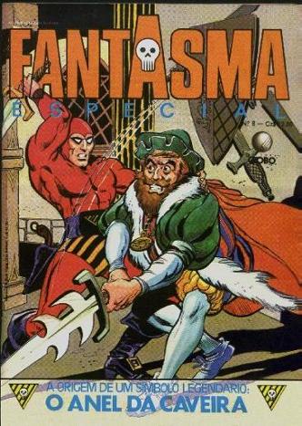 The first 7 issues of this colour series were published biannually by RGE until the end of 1986. The parent company, Editora Globo, then decided to cancel the practice of publishing comics under their RGE tradename, and continued to produce Fantasma comics for several years under the name Editora Globo. It was still essentially the same company but with a different name. The Fantasma Especial series re-started at #8 in February 1987, and changed to a monthly schedule that lasted until August 1989.