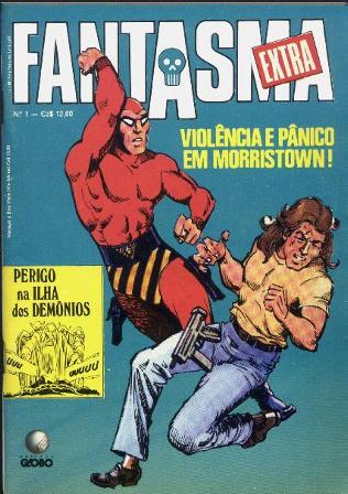 Globo started this series in February 1987 with the name Extra on the cover, but from #29 (May 1991) this name was dropped from the cover and replaced by a very small title Gibi Apresenta. In both cases, the title Fantasma was the dominant feature. The series mainly reprinted newspaper strip stories, but some issues contained original stories from Semic in Scandinavia. They were published bimonthly until #22 (Oct 1990), before switching to a monthly schedule. A total of 48 full colour issues were published before the series was cancelled in December 1992.