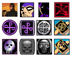 Once again these mainly consist of various Good Mark and Skull Mark designs, although there are also a few icons of The Phantom, and even a FREW logo. They were converted to Windows format using MacIco (freeware from http://www.xemico.com/macico/macico.zip), and adjusted using a Win Icon editor ArtIcons (http://www.aha-soft.com) to put them into an icon dll file. Several samples are shown below.